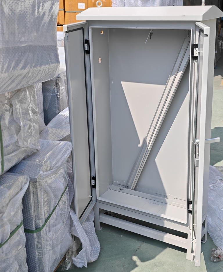 Vervolgens wordt het product via een elektrostatische spuitproductielijn gelijkmatig bedekt met een laag roestwerende primer en buitenverf en vervolgens uitgehard in een oven met constante temperatuur. Nadat het spuiten is voltooid, heeft de kast een uniforme kleur en fijne textuur, en is hij goed weerbestendig en corrosiebestendig.
